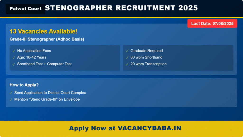 District and Sessions Judge, Palwal (HR) | Palwal Court Stenographer Recruitment 2025 |
