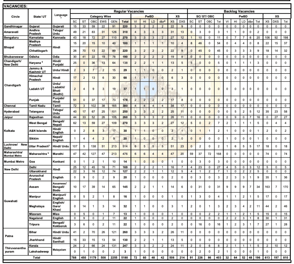 SBI Clerk Circle/ State/ UT/ Language Wise Vacancy 2025 Details